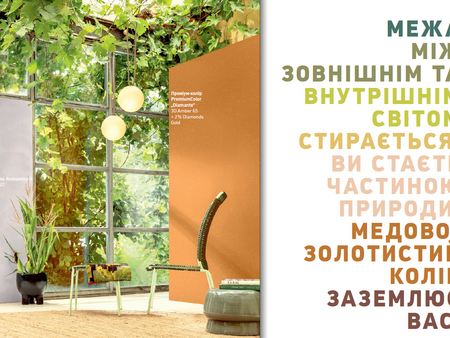Велика кількість світла, повітря, рослин, надавайте перевагу меблям та аксесуарам з натуральних матеріалів, а найголовніше: кольори! Це створить атмосферу природу у кожної кімнати. І залежно від додаткових кольорів та фактур поверхонь, наш модний колір медово-золотий завжди має інакший вигляд. Яскравий і елегантний? Або ви хотіли б зробити його теплим і потужним? Це все питання поєднання кольорів.